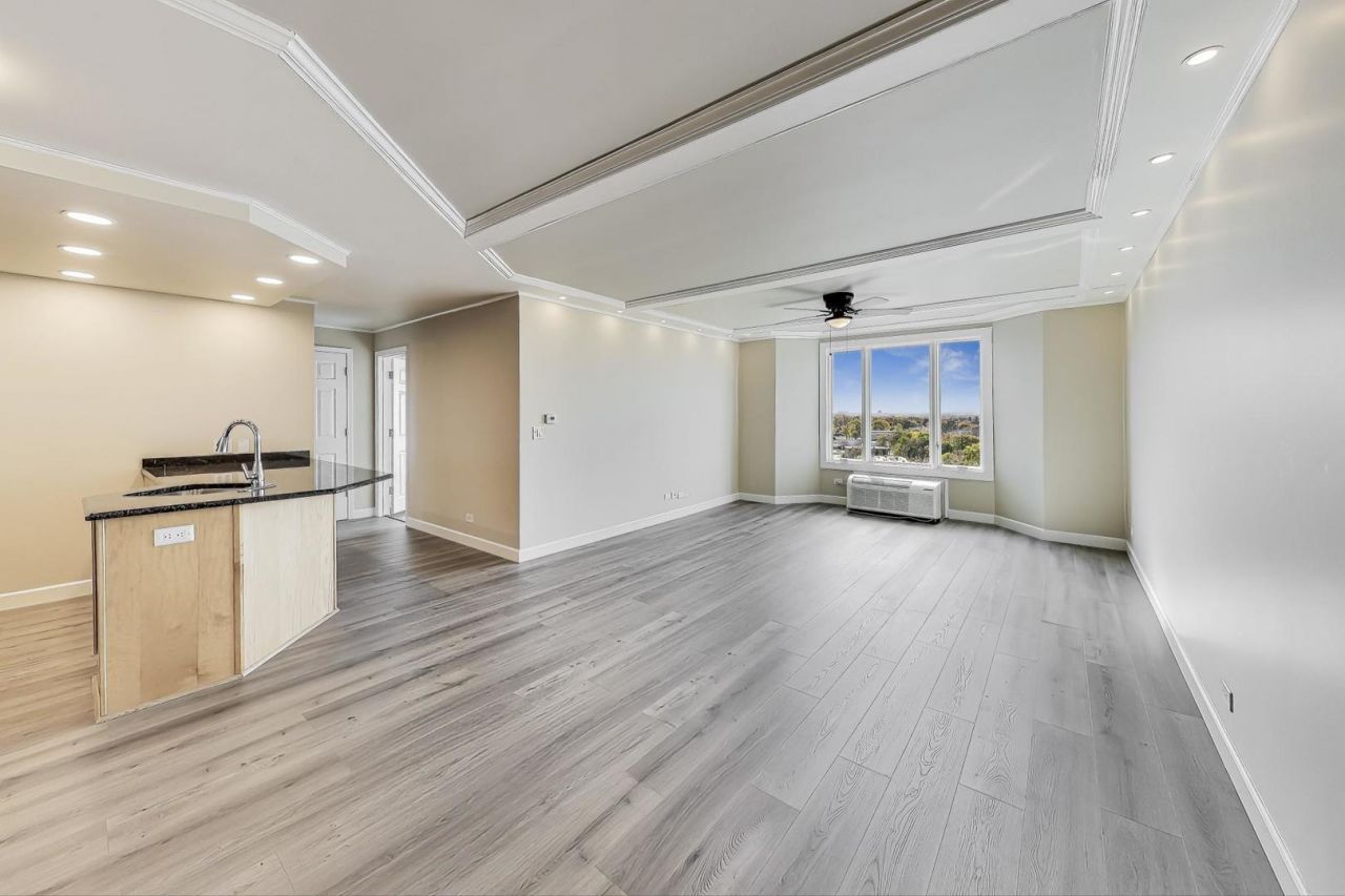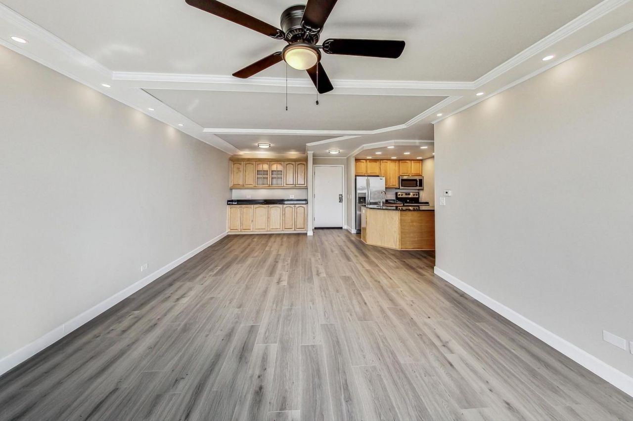 Spectacular open concept floorpan, in-unit laundry, coffered ceilings with beautiful crown molding and recessed lighting. Stainless steel appliances, plentiful cabinets w/ accent lighting. Brand new wide plank flooring, updated Pella windows, HVAC, newer washer and dryer. Bathroom features a whirlpool tub and a new marble vanity. Renaissance Place features concrete construction, offering excellent sound proofing and energy efficiency. Standard amenities include doorman, water, garbage, parking for two cars, fitness center, heated pool, bike storage, patio with outdoor BBQ grills, party room, exterior maintenance, package reception for deliveries from FedEx, Amazon, etc. Walking distance to shopping, restaurants, direct access to Palatine Trail. Convenient access to O'Hare and downtown via expressway. Close to Metra and downtown Palatine.