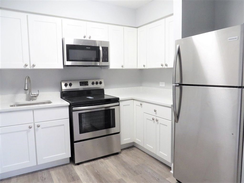 One bedroom one bathroom apartment in Mount Prospect with recent updates. The kitchen includes stainless steel appliances and granite countertops. Located conveniently close to the Randhurst Village shopping center, a grocery store, park, elementary school, and a 5 minute drive from two Metra stops. Laundry in building. Parking space included in rent. Pets welcome. Onsite maintenance 24 hours a day. **Photos are of a similar unit in the building.