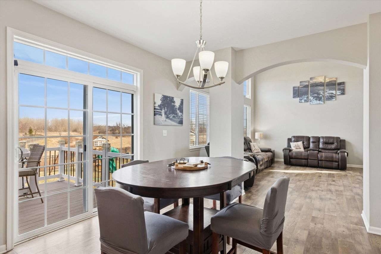 Absolutely beautiful nature views from this upgraded Tuscan model home! Main level features luxury vinyl plank flooring throughout with a formal living and dining room, two story family room and spacious eat in kitchen with SS appliances, quartz counters, subway tile backsplash, island, walk in pantry & breakfast bar. New carpeting in 2023 on the second level. Primary suite has vaulted ceiling, walk in closet and private bath with dual vanity sink and soaker tub. Two of the additional three bedrooms on the second floor have walk in closets! 9Ft Basement is finished with fifth bedroom, full bath and huge great room. In addition to backing to no one, back yard is fenced with concrete patio, deck and playset. Hot tub is negotiable.