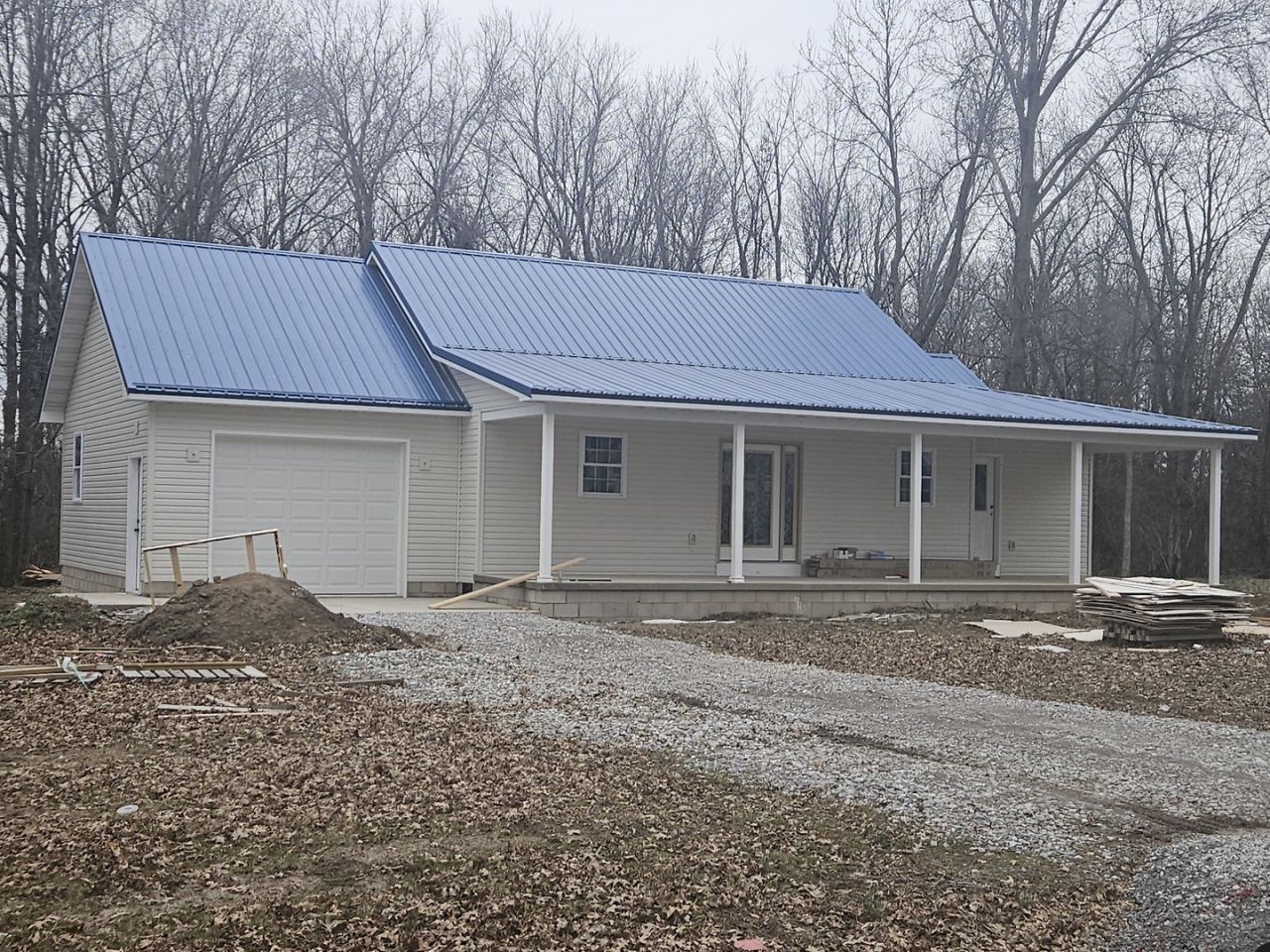 Brand new home with 2 bedrooms, large livingroom/dining/kitchen area, covered front and back porches, attached garage, edge of town location.