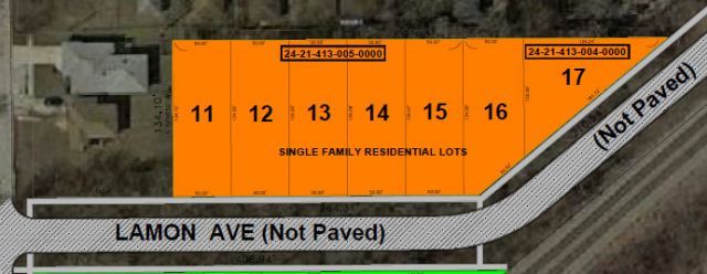 ATTENTION BUILDERS AND DEVELOPERS. A TOTAL OF 6 POTENTIAL RESIDENTIAL LOTS ARE AVAILABLE, WITH WATER MAINS, FIRE HYDRANTS, AND SANITARY SEWER MAINS ALREADY IN. STREET NEEDS TO BE PAVED, AND TREES NEED TO BE CLEARED. ALSO, THE LOTS NEED TO BE SUBDIVIDED. SELLER HAS ALL ENGINEERING, SURVEYS, SITE PLANS, ETC. SEE ATTACHED SITE PLAN HIGHLIGHTED IN ORANGE. LOTS LABELED 11-17 ARE INCLUDED IN THIS PRICE. OWNER IS A LICENSED REALTOR