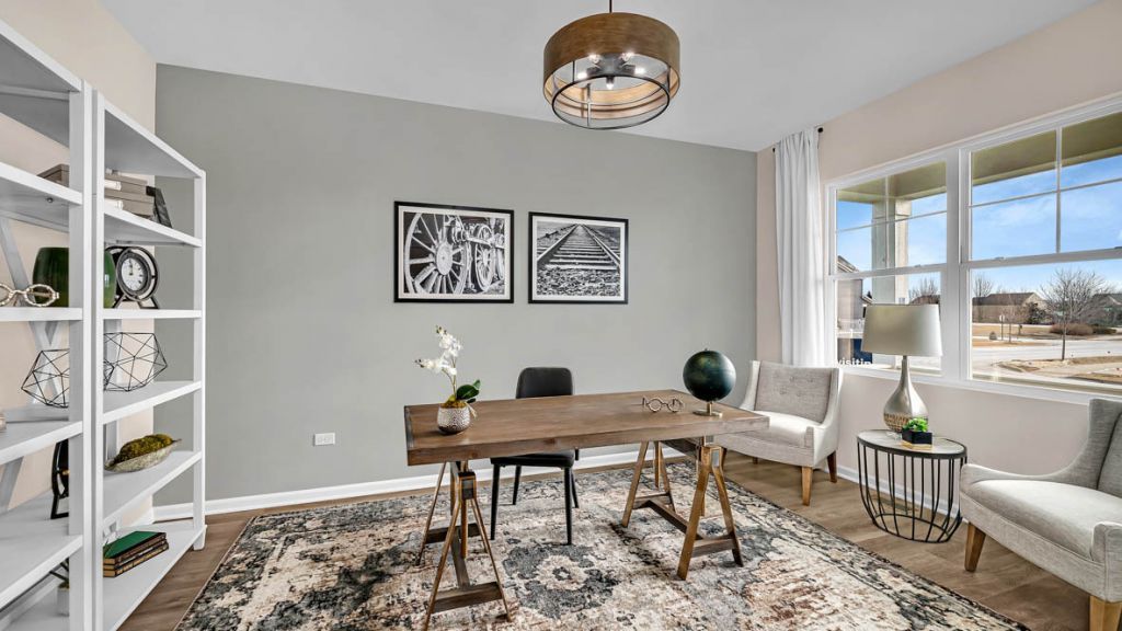Envision yourself at 1232 Wildflower Lane, Bartlett Illinois, a beautiful new home in our Grasslands Community. This 2-story single family home will be ready for a Spring move-in! This large, scenic homesite includes a fully sodded yard and beautiful landscaping. This Emerson plan offers 3,044 square feet of living space, offering 5 bedrooms, 3 full baths, a loft, 9-foot ceilings, and so much more. Entertaining will be easy in this open-concept kitchen and family room layout with a large island with an overhang for stools, 42-inch designer cabinetry with soft close drawers and crown molding. Additionally, the kitchen features a walk-in pantry, modern stainless-steel appliances, quartz countertops, and easy-to-maintain luxury vinyl plank flooring. Enjoy your private getaway with your large primary bedroom and en suite bathroom with a raised height dual sink, quartz top vanity, and walk-in shower with fiberglass surround and glass shower doors. Convenient walk-in laundry room, 4 additional bedrooms with a full second bath and a linen closet. A very hard to find first floor bedroom will be great for guests and entertaining. All D.R. Horton Chicago homes include our America's Smart Home Technology, featuring a smart video doorbell, smart Honeywell thermostat, smart door lock, Deako smart light switches and more. Photos are of similar home and model home. Actual home built may vary.