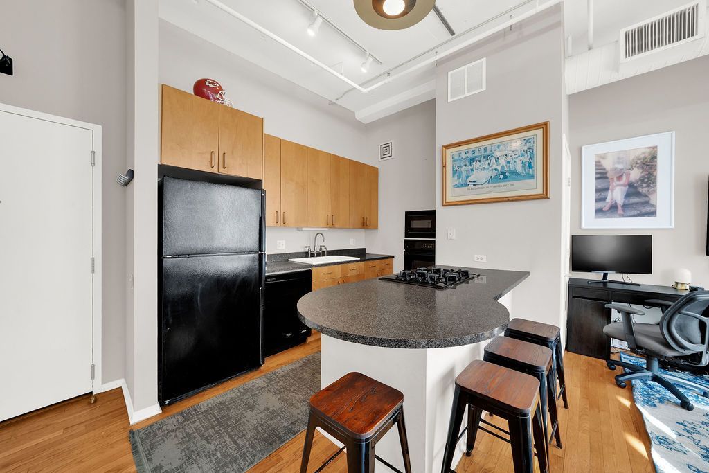 Fantastic one-bedroom in West Loop at Metropolitan Place! This bright and airy condo features oversized windows and a large balcony with east-facing views of the landscaped courtyard, Willis (Sears) Tower, and Union Station. The open-concept kitchen offers maple cabinetry and an island with breakfast bar-perfect for everyday living and entertaining. The spacious bedroom provides generous closet space, while 11-foot ceilings and an in-unit washer/dryer enhance comfort and convenience. Ideal for downtown professionals or Loop commuters, this home offers easy access to Greektown, Randolph Street, and Fulton Market dining, as well as Metra, CTA, and major expressways. Amenities include 24-hour door staff, fitness center, bike room, and garden terrace. Transferable lease garage parking available. Monthly assessments include cable, high-speed internet, and extra storage locker. Pet friendly and no rental cap.
