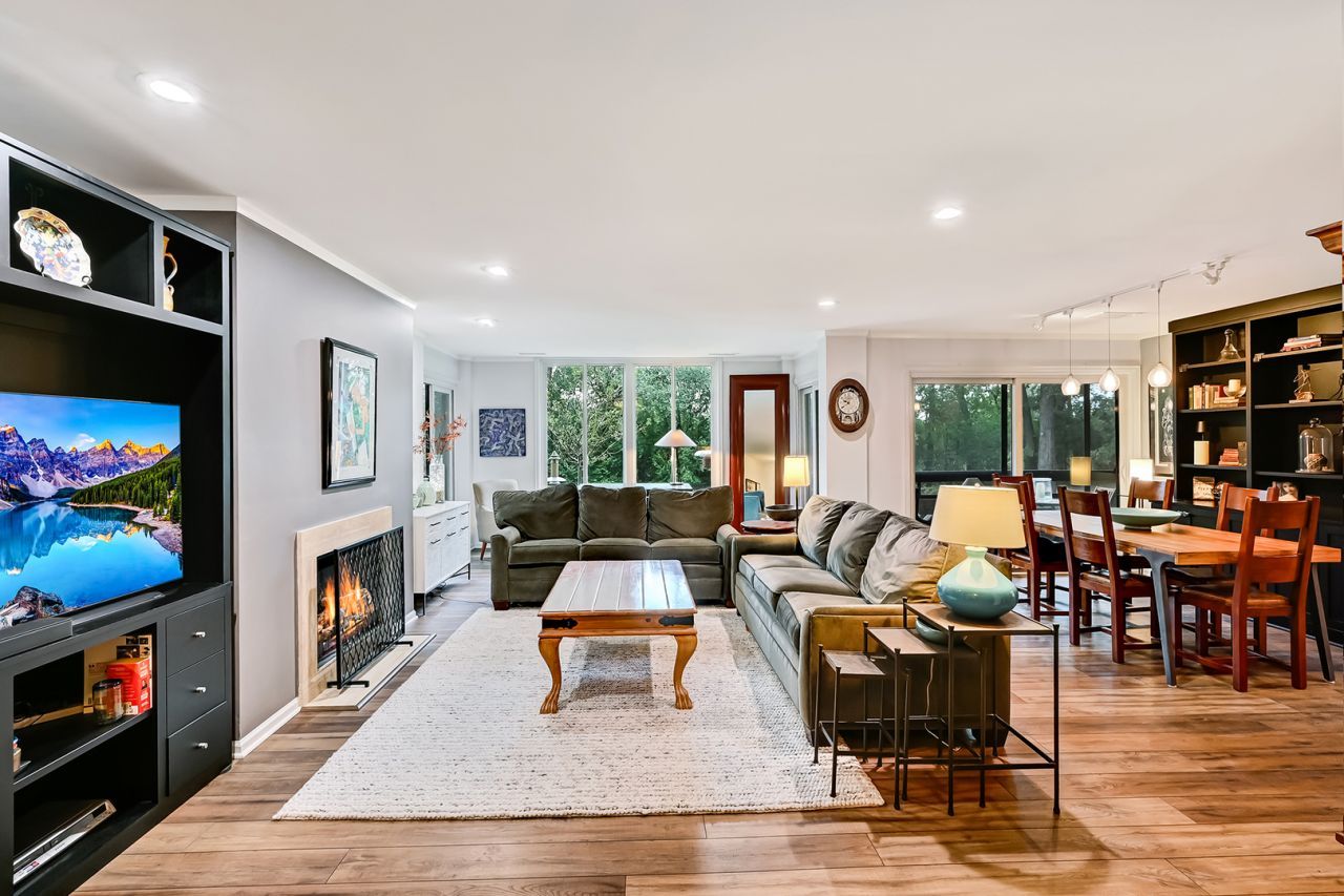MODERN LUXURY MEETS NATURAL BEAUTY This exceptional Graue Mill condo offers five-star living with two spacious bedrooms, two modern bathrooms, two screened balconies, and two dedicated parking spaces. The residence is designed to meet every need and is equipped with premium features throughout. The living and dining rooms feature a cozy fireplace, custom cabinetry, and stunning views that bring the natural surroundings into the home. The open floor plan allows for seamless entertaining indoors or outdoors on the two screened balconies. The beautifully modernized kitchen boasts custom birch cabinetry, sleek stainless steel appliances, and elegant granite countertops. Every appliance is state-of-the-art, including a double oven and a brand new dishwasher, providing both style and functionality for the home chef. Conveniently located adjacent to the kitchen and one of the balconies, the office offers a quiet space for productivity. The primary suite has been reconfigured to include a spacious walk-in closet, complemented by two additional full-sized closets. The second bedroom currently serves as a home office, complete with built-in cabinetry, bookshelves, drawers, and filing cabinets-ideal for remote work. Both bathrooms have been extensively renovated and upgraded to reflect high standards of comfort and style. Luxury vinyl plank flooring graces the living areas, while plush carpeting provides comfort in the bedrooms. The home is illuminated by beautiful light fixtures and recessed lighting. Most doors have been replaced with stunning Shaker-style five-panel doors, complemented by stylish hardware. Brand new windows, a cost-effective furnace, and efficient air conditioning ensure comfort and energy savings. Attention to detail is evident throughout, with no aspect of the home overlooked. Graue Mill amenities include a 24/7 manned gatehouse, high-speed internet, Infinity cable, a clubhouse, pickleball and tennis courts, an outdoor pool, and newly updated street lights, roads, and signage. The condo comes with garage spots Lower A #69 and #70 including a large storage unit. The storage locker is located at Upper A #36. Tour this magnificent condo today and experience luxury living at Graue Mill.