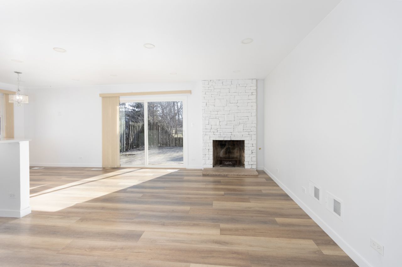 Beautifully updated tri-level in sought-after Pepper Tree Farms. THE ENTIRE HOME HAS BEEN FRESHLY PAINTED and the exterior freshly power washed, giving this home a crisp, move-in-ready feel.The updated kitchen features quartz countertops, a deep stainless sink, breakfast bar, and abundant cabinetry with sleek, modern lines. Three second-floor bedrooms include custom closet organizers with soft-close doors. All bathrooms have been thoughtfully updated, including a primary bath with dual sinks and a striking penny tile feature wall, and a hall bath with a deep soaking tub and multi-head shower. The lower level offers excellent flexibility with a fourth bedroom, full bath, family room, laundry, and storage-ideal for guests, related living, or a home office. Luxury vinyl flooring runs throughout the home-no carpet.Enjoy the fully fenced backyard with an expansive brick paver patio. Pepper Tree Farms residents appreciate the neighborhood pool, clubhouse, walking paths, green space, and nearby forest preserve.