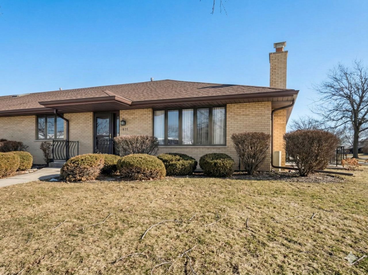 Hard-to-find brick end-unit ranch located in desirable Eagle Ridge, with only one currently available in the area! This maintained home offers a spacious living room with a cozy fireplace, plus a separate dining room with patio doors leading to a private side patio. The bright, airy kitchen features white appliances and ceramic tile flooring. Enjoy the convenience of an attached 2-car garage. The home includes two generously sized bedrooms with abundant closet space and two updated bathrooms. The main bathroom features a walk-in tub, New vanity, quartz counters.. while the primary bathroom offers grab bars and beautiful tile work. Major updates include: Furnace (2017) Water Heater (2019) Roof (2024) Estate sale, being sold AS IS with immediate possession available.