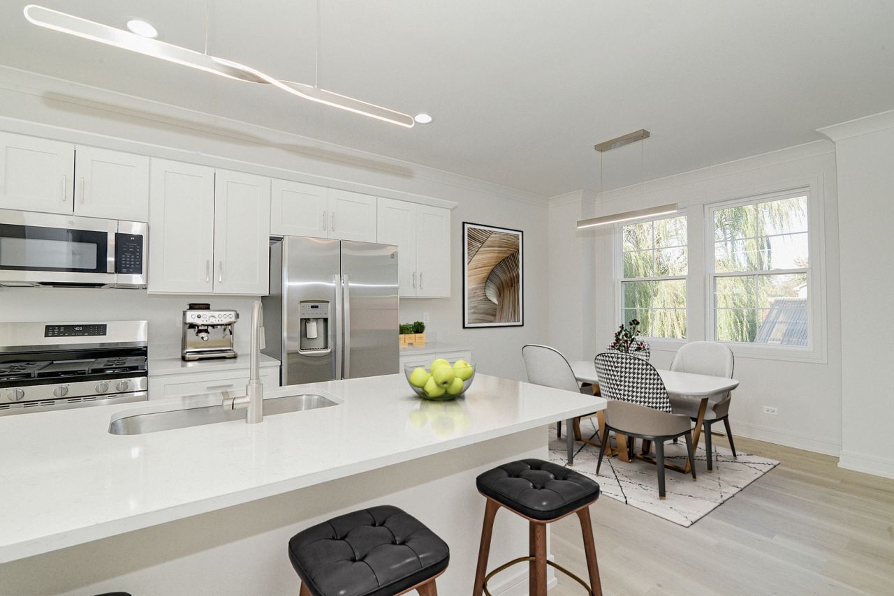 UNDER CONSTRUCTION - Estimated completion December 2025. Fantastic investment opportunity to own 10 brand new constuction townhomes in Bensenville. Each unit is 1970 square feet, have 2 car attached garage, 3 bedrooms, 2 1/2 baths and den. Master bedroom offers walk in closet and bathroom has 2 sinks and walk in shower. Modern kitchens with quartz countertops, SS appliances and dining area. 9 foot ceilings on main living level with crown molding. Each tenant would be responsible for their own utilities.Listing agent is a partner in the property. These units are located just minutes from Bensenville metra train station, major highways and O'Hare airport. Developer offering 1 year limited warranty. Rents are estimated.