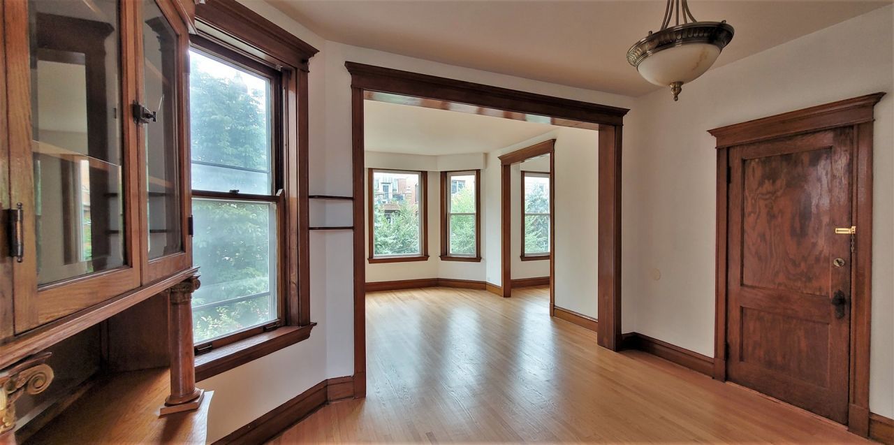 Available May 1, 2026. This large 1400 sq ft 2-bed plus office/den is for the tenant who loves CHARACTER, a lot of windows with NATURAL LIGHT, and plenty of living space and CLOSET SPACE. BEAUTIFUL VIEWS of St. Nicholas Ukrainian Catholic Cathedral thru the front windows. 10-foot ceilings. Enclosed back porch. Hardwood floors throughout. Garage parking spot included in rent price. Laundry in building. Apartment comes with 2 window AC units. Newer windows. Backyard has a common area deck. Owner is local and easily accessible. Hot Division Street area is only 5 blocks away. Rich's Deli & Groceries is only a block away. Mariano's is 4 blocks. Western Avenue bus is 1 block away, About 2 miles to the Eisenhower (I-290) Expressway and also the Kennedy (I-90/94) Expressway. Divvy bike station 1 block away. Sorry... no smoking and no dogs allowed.