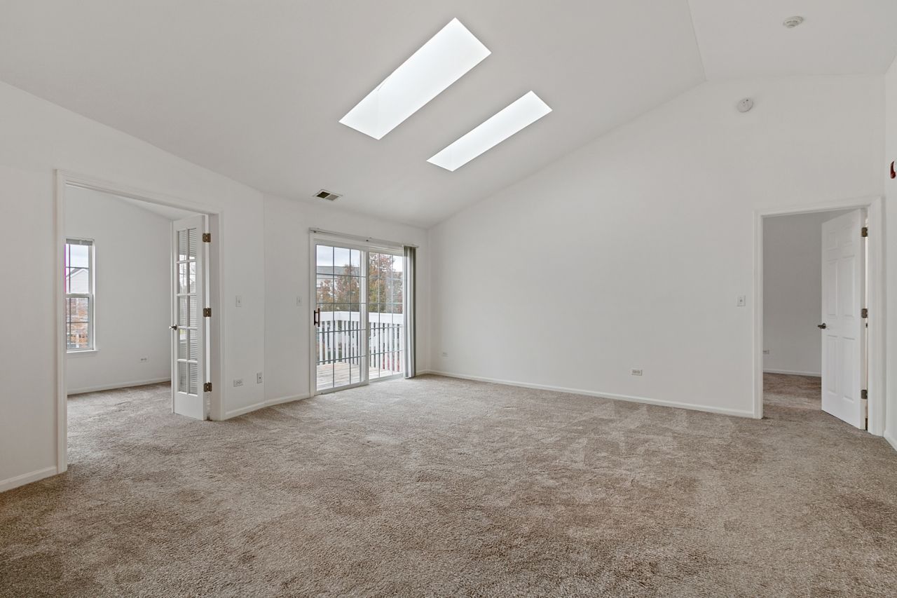 Available NOW! Welcome to this stylish and well-maintained second-floor condo offering the perfect blend of comfort, convenience, and serene surroundings. Enjoy peaceful pond views from your private deck and dining area-ideal for morning coffee or relaxing after a long day. This bright end unit features skylights that fill the open floor plan including a living room, kitchen, dining area with natural light. The updated kitchen boasts white cabinetry, Alpine White Silestone Quartz countertops, a sleek glass subway tile backsplash, Samsung stainless steel appliances, and elegant pendant lighting. Primary bedroom includes a large walk in closet, and a NEWLY Renovated Full bathroom including a new tile shower. The home includes a convenient in-unit laundry room with an LG top-load washer and front-load gas dryer. Additional bedroom includes a closet and access to 2nd bathroom. Private attached one-car garage (tool cabinet included).Located in a quiet community with scenic views and easy access to Amazon Fresh, Naperville Public Library, LA Fitness, this move-in-ready condo offers everything you need for easy, comfortable living in Naperville. District 204 School, Neuqua Valley High School!