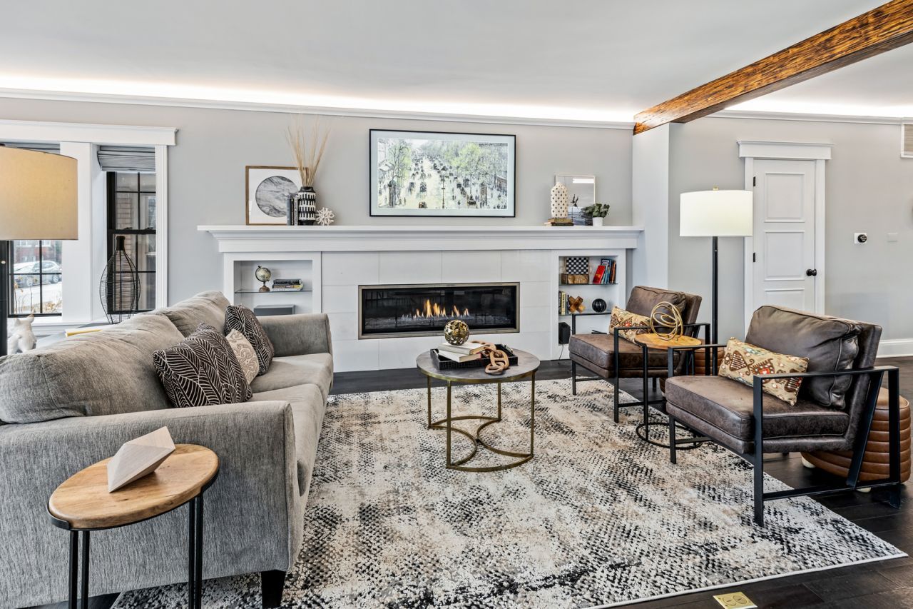 Architectural warmth meets riverfront in this fully reimagined Ravenswood Manor residence. Previously introduced to the market as a work-in-progress, 2712 W Sunnyside has been meticulously completed, transitioning from a 1918 brick classic into a striking, 4,100 square foot industrial-chic sanctuary. This is a home for the design-forward buyer-someone who prioritizes sunset rooftop views over lawn maintenance and architectural soul over cookie-cutter finishes. The main level serves as a masterclass in intentional design. Dramatic, artist-charred exposed beams and custom Jatoba wood floors are bathed in light from matte black custom windows. At its heart lies a culinary stage: a chef's kitchen anchored by dual islands with book-matched marble and oil-finished Sapele wood. Equipped with a 72 Blue Star double-oven range and Sub-Zero refrigeration, it is as much a high-performance workspace as it is a hub for entertaining. Privacy is engineered into the very bones of the home. A unique Y-beam staircase creates a distinctive split-layout, leading to a primary suite wing with a spa-like bath, complete with a custom walk-in closet. The lower level defies basement expectations with 9' ceilings, a sleek built-in bar, and a stunning wine display-the perfect preamble to an evening on the water. Fully updated with triple-zone HVAC and integrated smart technology, this is no longer a project. The true lifestyle pivot happens outside. Step onto the brand-new Sky-Yard-a sprawling rooftop deck atop the attached 2-car garage. With North Branch River views and rare 9-foot riverfront rights, the property footprint allows for the future installation of a tiered stair system, gangway, and private floating dock-perfect for kayaking or tranquil mornings by the water. (See survey and mock up design in additional documents) a rare urban waterfront opportunity. It is a turn-key piece of Chicago history!