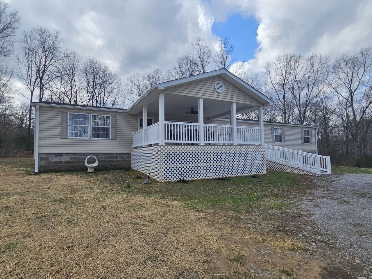 Built in 2009 and situated on 5 peaceful acres, this 4 bedroom, 2 bath home offers comfortable country living with an open floor plan. The kitchen features an island and pantry closet and opens to a large family room with fireplace, perfect for gathering and entertaining. Recent updates include HVAC (2022), appliances (2022), new gutters, and new front door, storm door, French doors, and back door (2025). A large covered front porch and spacious back deck were also added in 2025, creating great outdoor living spaces. A recent survey has been completed and will be conveyed to the buyer at closing.