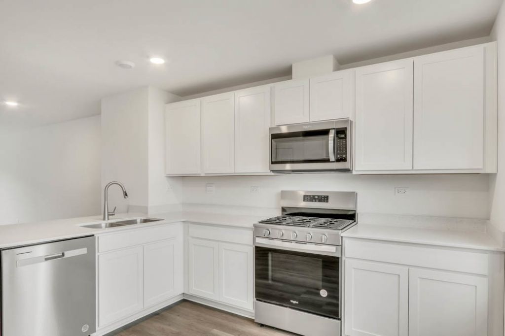 Welcome home to 423 Lakeshore Ct. This beautiful townhome is in our Charlestowne Lakes community in St. Charles, Illinois. Ready for a late Summer move-in. This Monroe plan offers over 1600 square feet of living space with 2 bedrooms, a loft, 2.5 baths, and an additional flex space. Walk past the beautiful wetlands to your front door where you will be greeted by the finished flex room, which would be perfect as a den, office or playroom. Walking up the stairs, you will find this home's open concept living space. The expansive kitchen is wrapped by a peninsula of counters and has gorgeous sunlight pouring in from the South sky. The kitchen features designer soft-close cabinetry, quartz countertops, a pantry, and stainless-steel appliances. Upstairs you will find a large primary bedroom with a spacious walk-in closet and en suite bath. There is also a laundry room, a second full bath, and an additional bedroom adjacent to an open loft area, another great space for an upstairs office, playroom or TV area to escape the everyday. Decorate with the updated Craftsman style trim and 5-panel doors. Luxury vinyl plank flooring is included in the great room, kitchen and dining area, all baths, and the laundry room. All homes at Charlestowne Lakes include fully sodded yards and maintenance-free living. Photos are of similar home.