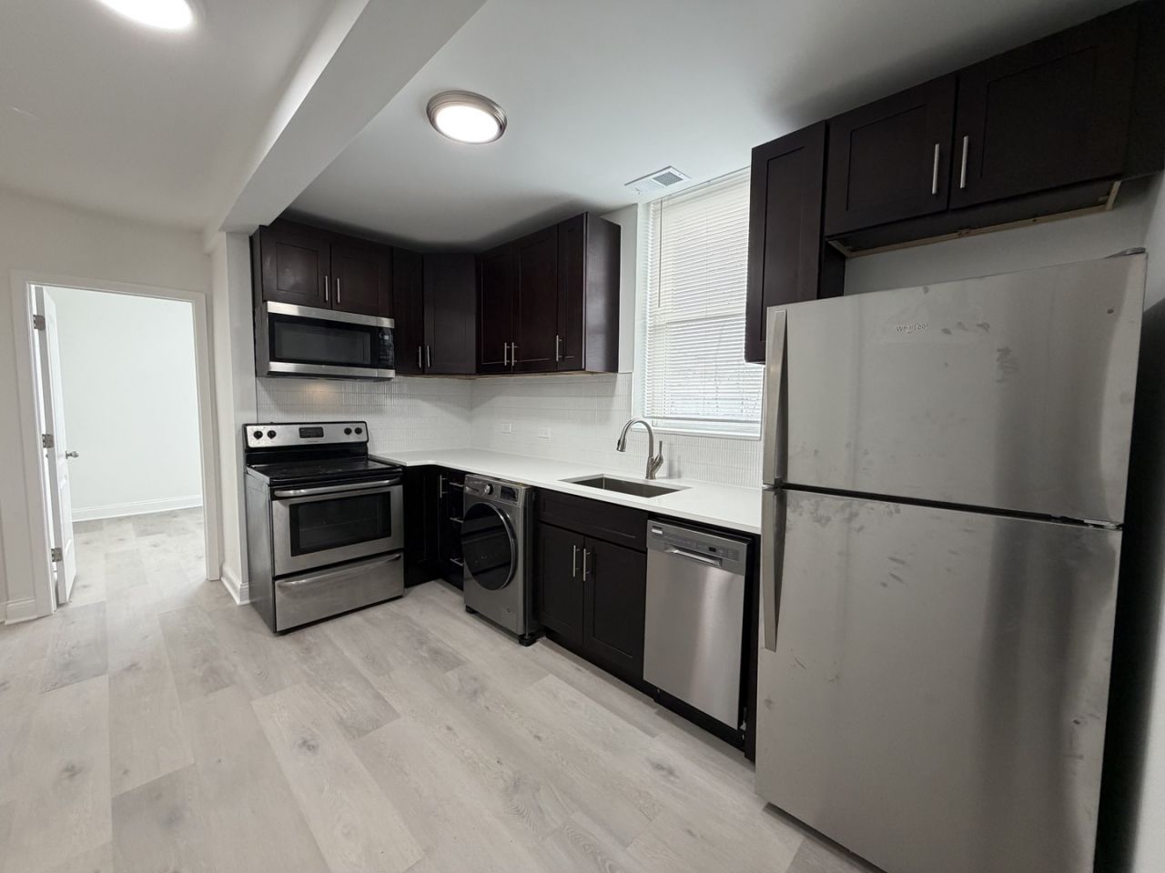 The bright living space flows into a stylish kitchen equipped with brand-new cabinetry, sleek countertops, and stainless steel appliances. Both bedrooms offer comfortable layouts with good closet space, while the fully updated bathroom features contemporary tile and fixtures for a clean, modern look. Enjoy the ease of in-unit washer and dryer, making everyday living more convenient. An exterior parking space is also available, providing a valuable option for residents with a vehicle. Located in vibrant Uptown, you'll be close to neighborhood restaurants, cafes, parks, nightlife, and public transportation for an easy commute downtown. $75/person application fee. $350/person move-in fee. Pet friendly! $350 per pet. No aggressive breeds.