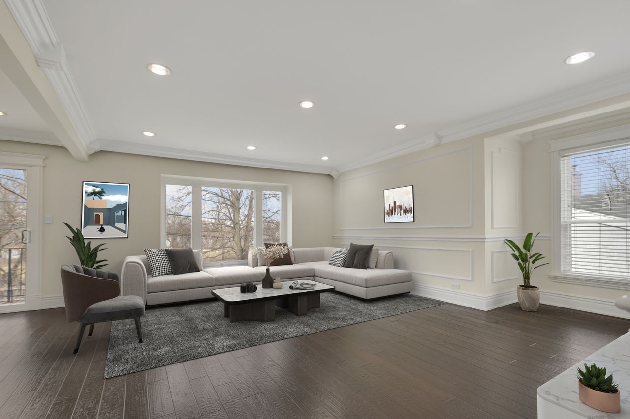 Welcome to a stunningly renewed Hinsdale home, enriched with sophisticated updates and stylish enhancements throughout. This second-floor condo complete with a finished basement and private garage offers exceptional comfort wrapped in a refined blend of timeless craftsmanship and contemporary style. The expansive main living area showcases rich dark flooring, crisp white millwork, and sleek recessed lighting that continues throughout the entire unit, creating a warm and sophisticated ambiance. Oversized windows fill the space with soft natural light, while the generous layout provides versatility for relaxing, entertaining, or crafting your ideal living retreat. The formal dining room continues the theme of refined comfort with detailed wall paneling, clean crown molding, and sliding doors that open to an elevated deck with stairs leading to the grassy backyard-perfect for fresh-air dining or peaceful morning coffee. The adjacent brand new kitchen features sleek white cabinets with quartz countertops and modern stainless steel appliances. Two beautifully updated bathrooms elevate the home's comfort and luxury. The first features a sleek floating vanity, wide vessel sink, contemporary bidet, mirrored storage cabinetry, and a glass-enclosed shower wrapped in stone-inspired tile. The ensuite bathroom continues the modern aesthetic with espresso-toned finishes, a deep soaking tub framed in mosaic tile, polished fixtures, and thoughtfully layered lighting. A finished basement extends the home's versatility-ideal for additional living space if needed or simply as a generous storage area. Located close to top-rated schools, shopping, dining, and transportation, this distinctive residence delivers timeless character blended with fresh, modern refinement. Schedule your visit today to experience the style, efficient space, and flexibility this exceptional Hinsdale condo offers.