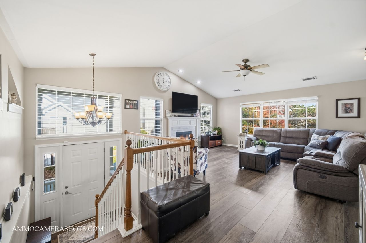 Don't miss this rare opportunity to own a spacious, duplex in Victoria Meadows. With 4 bedrooms, 3 full bathrooms, and a 3 car garage, this home delivers the space, updates, and lifestyle buyers are searching for. Step inside to a beautifully updated interior featuring luxury vinyl flooring (2020) throughout most of the home. The oversized living room is an immediate showstopper-bright, open, and anchored by a gorgeous fireplace surrounded by large windows that flood the space with natural light. Updated blinds (2020) add a clean, modern touch. The living room flows seamlessly into the updated kitchen, complete with quartz countertops (2024), Stainless Steel appliances, and a huge pantry with stylish barn doors. It's the perfect setup for everyday living and effortless entertaining. The primary suite offers vaulted ceilings, a spacious walk in closet, and a private ensuite bathroom. Two additional bedrooms share a full guest accessible bathroom on the main level. The finished lower level adds incredible versatility with a large family room, a fourth bedroom, and another full bathroom-ideal for guests, extended family, or a private home office. Step outside to a large, fully fenced backyard with direct access from the lower level-perfect for pets, play, or outdoor gatherings. Major updates include roof and siding (2018) and sliding doors (2020). Low HOA fees make this home even more appealing. The location is unbeatable-walk to restaurants, coffee shops, and shopping, with parks and trails nearby. This is a beautifully maintained, move in ready home that truly has it all-and it won't last long. *Seller is an Illinois Licensed Real Estate Broker.