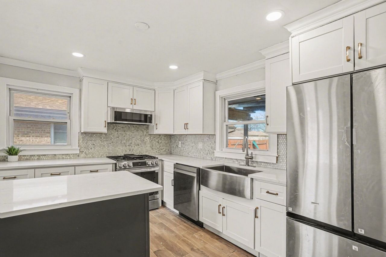 Welcome home! This brick ranch has been fully updated & offers a second story addition for extra comfort! Featuring a two-story addition with real hardwood throughout, this home provides the perfect blend of space and flexibility. With a primary suite upstairs, and multiple first floor bedrooms, this home checks all the boxes. Enjoy the bright kitchen with new oversized cabinets, high-tier island, and 2025 appliances. The driveway leads to a spacious 2.5-car garage (25x23), featuring two overhead doors, and tons of storage space. Located just down the street from the train station and tons of local options, come check this home out today!