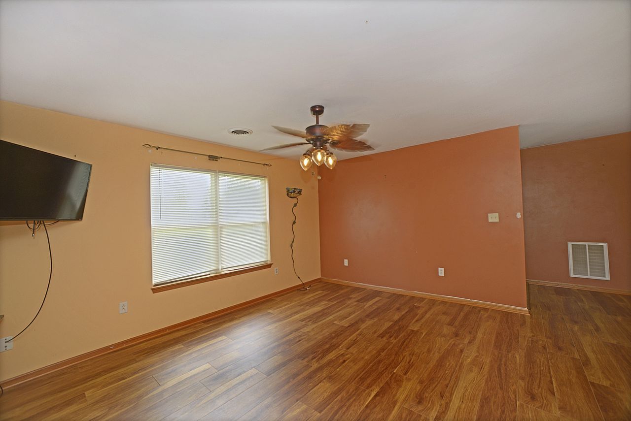 Enjoy the ease of single-level living in this well-maintained 3-bedroom, 1-bath home. A functional and flexible layout offers a spacious living room and an inviting eat-in kitchen with room for a full dining table-perfect for everyday living and entertaining. The front bedroom is thoughtfully separated from the others, making it an ideal option for a home office, guest room, or additional living space. A large utility closet provides excellent pantry and storage solutions to keep everything organized. Step outside through sliding glass doors to a generous, fully fenced backyard with a patio-perfect for relaxing, pets, or hosting gatherings. Two additional bedrooms and a full bathroom complete the main level. Additional highlights include an attached one-car garage, a wide concrete driveway for extra parking, and a covered front entry for added curb appeal and protection from the elements. Vinyl siding and a charming scalloped accent in the front gable enhance the home's exterior character.