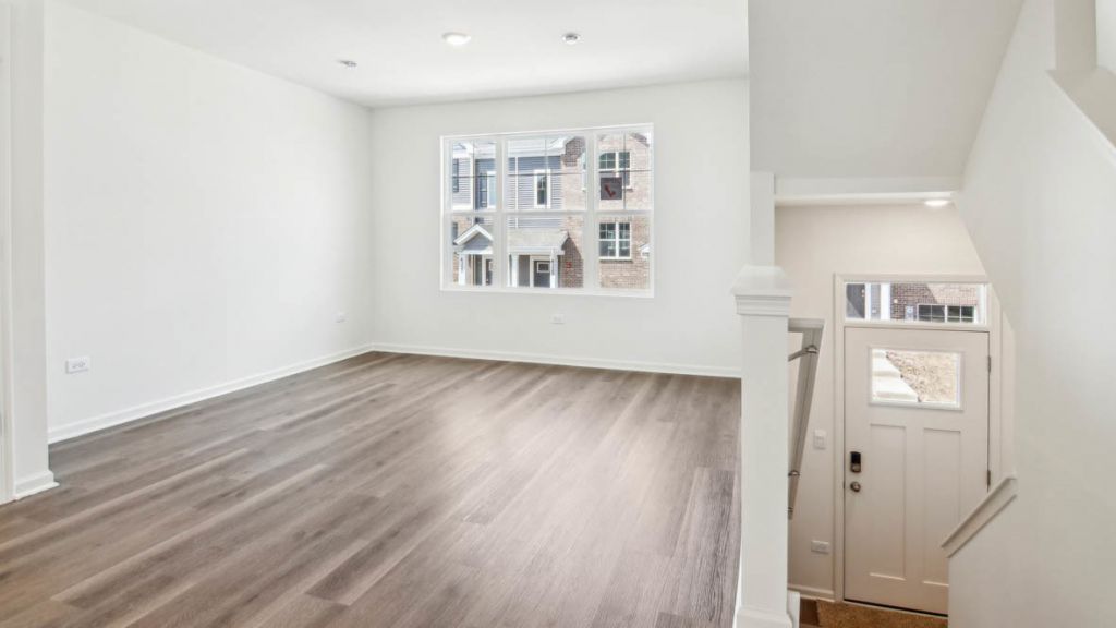 Discover yourself at 6399 Ulster Dr., a beautiful new home in our Oak Ridge community. This townhome will be ready for a summer move-in! Homesite includes a fully sodded yard that is maintained throughout the year as well as snow removal in the winter and is an End Unit! This Garfield townhome plan offers over 1,756 square feet of living space with 3 bedrooms, 2.5 baths, and finished flex room. As soon as you step inside, you'll be greeted by the finished flex room, which is perfect as a den or playroom. Walking up the stairs, you will find this home's open concept living space. The expansive kitchen overlooks both the front dining and back great room areas, making it the ideal space to entertain. Additionally, your kitchen features designer cabinetry, a spacious island with quartz countertops, and pantry. Enjoy your large primary bedroom with a walk-in closet and connecting en suite bathroom. The rest of the upper level features a laundry room, secondary bedrooms with a full second bath, and linen closet. All Chicago homes include our America's Smart Home Technology. Photos are of similar home and model home. Actual home built may vary.