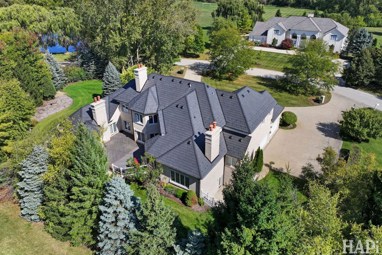 This grand estate in gorgeous Farmington Ridge of South Barrington offers 5 bedrooms and 5.1 baths, combining timeless elegance with exceptional functionality. A dramatic two-story foyer and living room are filled with natural light from expansive windows, highlighting the beautiful hardwood floors throughout the main level. The first-floor primary suite provides a luxurious retreat with a fireplace and a cozy sitting area surrounded by windows. A main-floor office near the front entrance is ideal for meeting with clients or working from home. The gourmet maple and granite kitchen features Thermador, Bosch, and Sub-Zero appliances, abundant cabinetry, a large island with seating, and a sunny breakfast nook that opens to the inviting family room. The kitchen and family room lead to a spacious deck and lower patio-perfect spaces for entertaining or relaxing outdoors. A convenient double staircase leads upstairs to a large ensuite bedroom with a sitting area and walk-in closet, serving as an ideal second primary suite, along with three additional generously sized bedrooms. The walk-out, fully finished lower level is designed for entertaining, offering two fireplaces, an expansive recreation room, a wet bar, wine room, full bath, and a large separate area ideal for a game/play or crafts room. Outside, the circular brick paver driveway leads to a four-car garage with access to a large mudroom and laundry area. Impeccably maintained inside and out, this home effortlessly blends sophistication, comfort, and convenience in a premier location near shopping, dining, expressways, and highly acclaimed District 220 schools. Come and see this gem just waiting for you to call home! DaVinci roof replaced in 2021; 3 furnaces and 3 central ACs approximately 8 years old; 2 water heaters replaced in 2025; Water well pump replaced in 2022; water system 2023