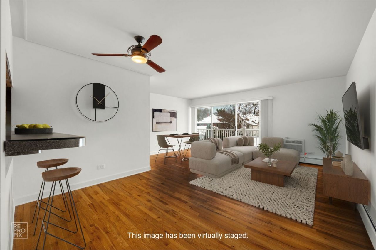 Discover effortless downtown living in this beautifully updated end-unit condo, perfectly situated in the heart of vibrant La Grange. Just steps from charming boutiques, top-rated restaurants, and year-round activities, this well-maintained all-brick building exudes character and convenience. Enjoy warm summer days relaxing in the inviting front seating area, with private parking in back and an assigned spot (#8) included. Located on the 2nd floor, Unit 202 has been freshly renovated from top to bottom, featuring gleaming hardwood floors, fresh paint, and a light-filled open-concept living and dining space ready for your personal touch. The galley kitchen shines with stainless steel appliances, abundant cabinetry, and a spacious breakfast bar perfect for morning coffee. Step out to the cozy covered balcony-grills allowed!-for easy indoor-outdoor living. The large primary bedroom offers a generous walk-in closet with organizer, while the second bedroom provides impressive space and storage. The stunning, fully updated bath boasts modern tile, new finishes, and a bright, contemporary feel. Additional perks include newer wall A/C units, an elevator in the building, and convenient ground-floor laundry and storage (#202). Move-in ready and in an unbeatable location-no pets, no rentals allowed & no in unit laundry. Come experience this exceptional home today!