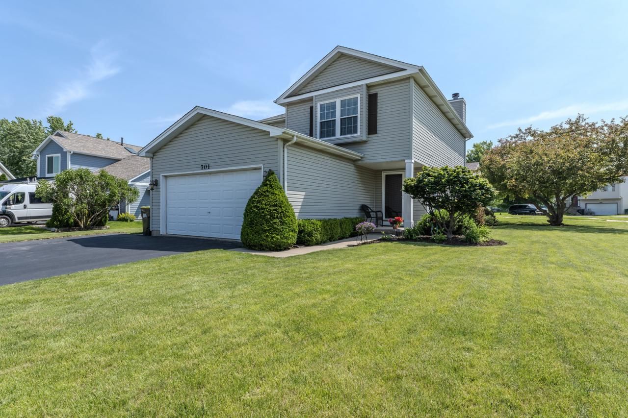 Meticulously Maintained 3 Bed 2.1 Bath Single Family Home in a Prime Location on a Quiet Corner Lot in a Cul-De-Sac w/ Tons of Updates and Over 2,400 Livable Sq Feet! The Moment You Arrive at 701 Pat, You'll Notice Modern Amenities & the Inviting Atmosphere the Original Owner Created w/ a Keen Eye for Small Details that Unquestionably Make this one of the Most Captivating Spaces Around! Get Cozy in the Living Room Next to the Gas Fireplace & Admire the Exquisite Crown Molding Accenting the Wall Showcased Above Sleek Engineered Hardwood Flooring (2019)! Entertain Friends & Family in the Exquisite Dining Room and Look Out Through Your New Windows (2020) into the Professionally Landscaped Backyard! Conveniently Adjacent, the Large Corner Kitchen w/ Island & Breakfast Bar is a Chef's Dream! Large Cabinets, Faux Granite Laminate Countertops & Newer Stainless Steel Appliances (2016)! A Large Mud Room w/ Laundry & Half Bath Round Off the Main Level! Upstairs Retreat into Your Massive Master Bedroom w/ Vaulted Ceilings, Walk in Closet & Sophisticated Finishings! Two More Spacious Bedrooms w/ Ample Closet Space & Another Shared Full Bathroom Round Off the 2nd Level! The Large Finished Basement w/ Family Room, Full Bath & Additional Bedroom or Office is Freshly Painted (2024) & Makes for a Perfect In-Law Arrangement or Multi Generational Living Space! Other Updates Include: Newly Installed Trim & Paint Around the Shed & Garage (2024), A/C (2022), Roof (2016) Water Heater (2014)! This Home is Move In Ready & Feels Brand New! Outside, You'll Find a Peaceful, Backyard Perfect for Relaxation. Enjoy the Storage Shed & Garden, Making this Home an Ideal Blend of Comfort and Functionality!